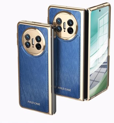 • Smartphone Flip Cases Folding Case Compatible with Huawei Mate X5 with Screen Protector, Luxury PU Leather Slim Fit Phone Cover – Plating Gold Edge, Drop, Scratch & Shock Protection Case(Blue)