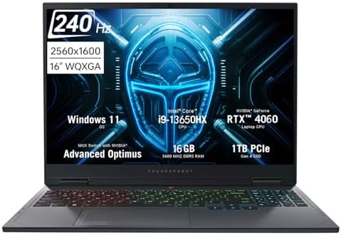 • WEELIAO Thunderobot Hunter Blade R16 (2024) Gaming Laptop, 16″ QHD+ 240hz 2.5K Display, i7-13650HX, RTX 4060, 16GB DDR5 RAM, 512GB SSD, RGB Backlit Keyboard, Wi-Fi 6, Windows 11 Home, Grey