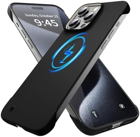 • GRECAZO Magnetic Slim Case Fit for iPhone 15 Pro Phone Case 6.1″(2023) Ultra-Thin Lightweight Durable Frameless Matte Hard MagSafe Cover Case with Pull Ring Shockproof Non Slip Rope-Black