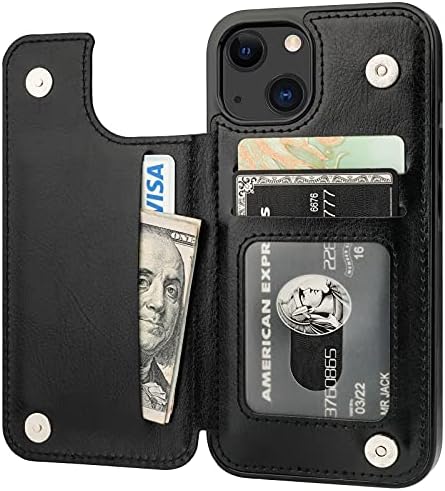• Onetop Compatible with iPhone 13 Wallet Case with Card Holder, PU Leather Kickstand Card Slots Case, Double Magnetic Clasp Durable Shockproof Cover 6.1 Inch(Black)