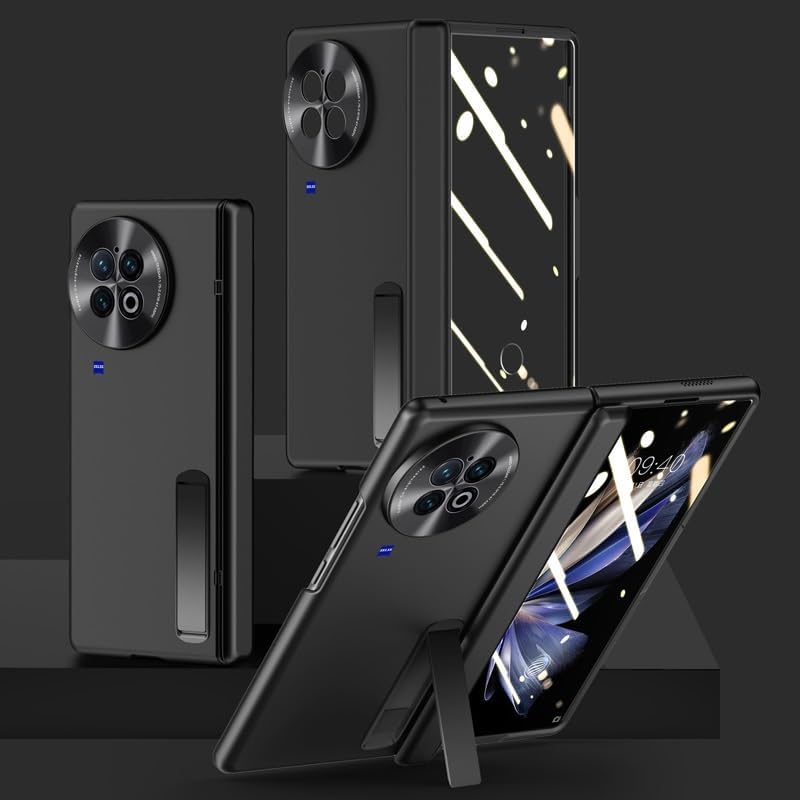 • Smartphone Flip Cover For Vivo X Fold 2 Case with Kickstand, Ultra-Thin Lightweight Case For Vivo X Fold 2 with Built-in HD Screen Protector Shockproof Full Rugged Hard PC Cover(Black)