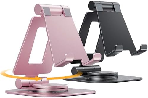 • Nulaxy 2-Pack 360 Rotating Phone Stand, Fully Adjustable Foldable Phone Holder, Aluminum Desktop Cradle with Swivel Anti-Slip Base, Office Accessories for All Phones, Black & Rose Gold