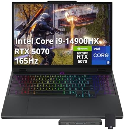 • Lenovo Legion 5 16″ WQXGA 165Hz Gaming Laptop, Intel i9-14900HX, 64GB DDR5, 4TB SSD, NVIDIA GeForce RTX 4070 8GB GDDR6, RGB Backlit Keyboard, Wi-Fi 6E, Windows 11 Pro, Gray, 256GB Docking Station Set
