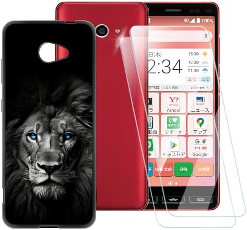 • Dark Lion Pattern Case Compatible with Kyocera Katan Sumaho 2 A001KC + [2 Pack] Screen Protector Tempered Glass, Shockproof Case Cover for Kyocera Easy Smartphone 2 (5.3 inch)