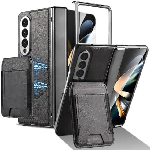 • Smartphone Flip Cases For Samsung Galaxy Z Fold 4 5G Magnetic Detachable 2-in-1 Leather Case with Card Holder, Front Screen Protector & Kickstand – Slim Wallet Cover(Black)