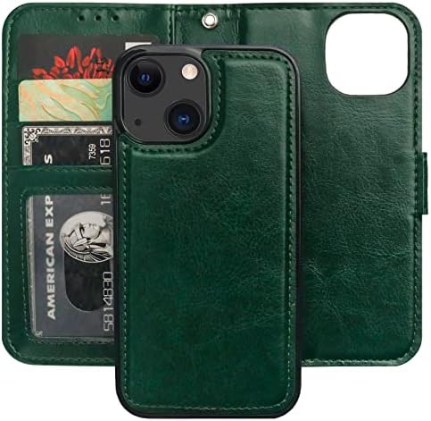 • Bocasal Detachable Wallet Case for iPhone 13 Mini RFID Blocking Card Slots Holder Premium PU Leather Magnetic Kickstand Shockproof Wrist Strap Removable Flip Protective Cover 5G 5.4 inch (Green)