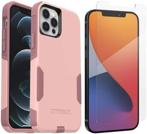 • OtterBox Commuter Series Case for iPhone 12 & iPhone 12 Pro (Only) – with Zagg Glass Elite+ Clear Screen Protector – Non-Retail Packaging – Ballet Way (Pink)