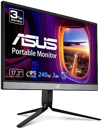 • ASUS ROG Strix 17.3″ 1080P Portable Gaming Monitor (XG17AHP) – Full HD, IPS, 240Hz, 3ms, Adaptive-Sync, Smart Case, ROG Bag & Tripod, USB-C Power Delivery, Micro HDMI, For Laptop, PC, Phone, Console