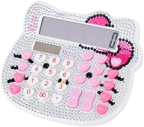• Women Calculators,Desktop Calculator 12 Digit with Large LCD Display and Sensitive Button, Solar and Battery Dual Power, Standard Function for Office, Home, School (White + White Diamonds)