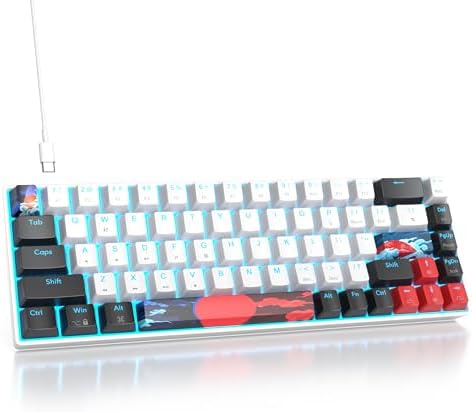 • surmen 65% Mechanical Gaming Keyboard with Linear Red Switch, Wired Mini Compact Keyboard 60 Percent Backlit for Laptop Desktop PC Gamers?68 White-Ice Blue?