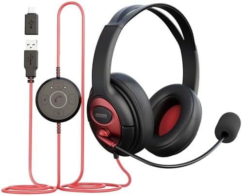 • MAIRDI USB Headset with Microphone, Wired PC Headset, USB-A & USB-C Computer Headset with Mic Noise Canceling for Laptop Teams Office Work CallCenter Business Dragon Naturelly Speaking