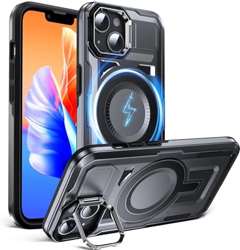 • DASFOND Shield Series for iPhone 13/iPhone 14 Case with Camera Stand [Compatible with MagSafe] Military Shockproof Protection Heavy Duty Rugged Lens kickstand Magnetic Phone Cover iPhone 14/13, Black