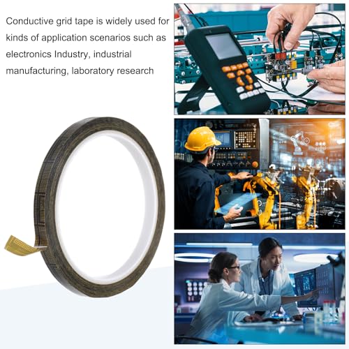 Conductive grid tape is widely used for kinds of application such as electronics Industry, industrial manufacturing, laboratory research, suitable for circuit board, laptop, mobile phone communication requires external packaging of anti-static products. Specification:Color: Black/Yellow Material: OPP filmThickness:: 0.06mm / 2.36 MilLength: 36m / 39 YardsWidth: 10mm / 0.4inchPacking List: 1pcs