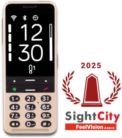 Phone for Blind and Visually Impaired with Tactile Buttons; Advanced AI Assistant, and SOS Alerts. Easy to Use, Golden Sand Color