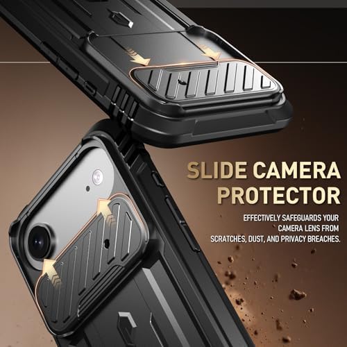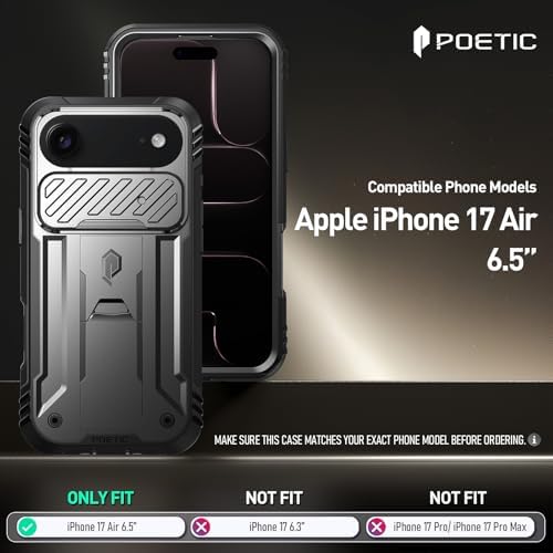 Poetic for iPhone Air Case with Camera Control Capture Button, [Slide Camera Cover] [Built-in Stand] [Built-in Screen Protector] Full-Body Military Grade Rugged Phone Case for iPhone Air, Black