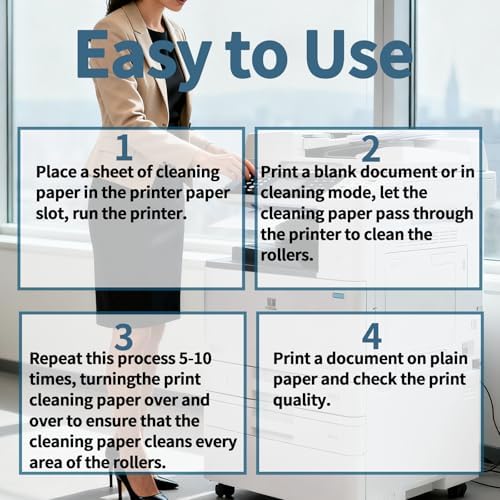 Easy to Use & Effective:To clean, simply load the printer cleaning sheets into your printer as you would with regular paper. For best results, use multiple sheets if needed. These scanner cleaning sheets deeply clean the printer’s internal components, helping to prevent issues like ink smudging, ghosting, and misalignments, while also improving print quality.