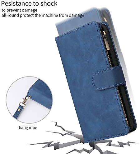 QLTYPRI Case for Samsung Galaxy A55 5G, Large Capacity Leather Wallet Case 6 Card Holder & 1 Zipper Pocket Kickstand Wrist Strap Magnetic Protective Cover for Samsung A55 5G – Blue