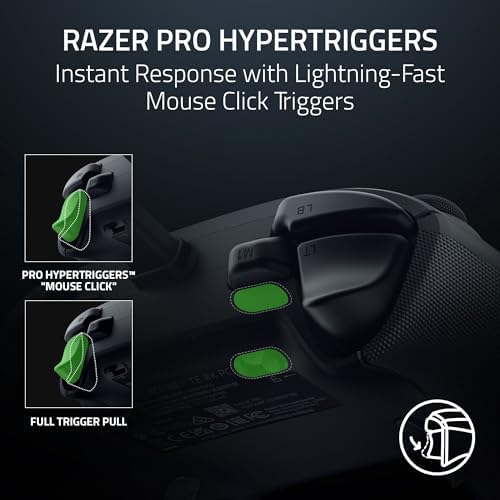 - Razer Pro HyperTriggers – Fire first with lightning-fast mouse click triggers or enable full analog control for enhanced precision—all with a flick of a switch.