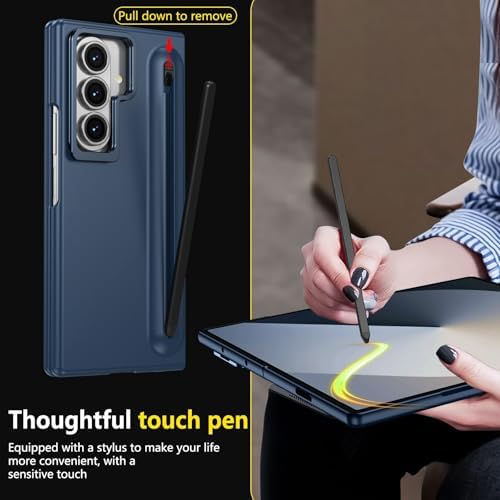 Smartphone Flip Cases Camera Stand Compatible with Samsung Galaxy Z Fold 7 Case with Built-In New Compact S Pen Slot, Case with Screen Protector Folding Series Protective Cover W/ Regular Stylus(Blue)