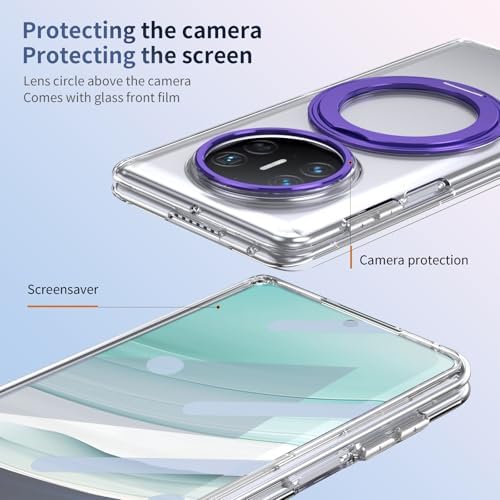 Smartphone Flip Cases Compatible with Huawei Mate X5 Case with Screen Protector, 360°Rotatable Ring Kickstand, Military Grade Shockproof Translucent Protective Case, Crystal Clear(Purple)