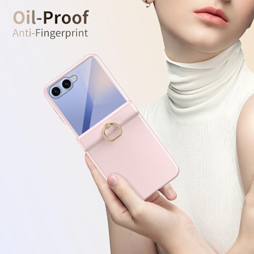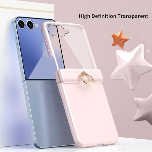Smartphone Flip Cases Ultra-Thin PC Case Compatible With Samsung Galaxy Z Flip 7 (2025),Hinge Cover with 360° Rotatable Ring Holder,Built-in Tempered Glass Screen Protector(Pink)