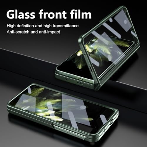 Smartphone Flip Cover Compatible with Oppo Find N3 Case with Built-in Writing Pen,Screen Protector & Hinge Protection & S Pen Holder Slot Protective Cover Shookproof Anti-Drop Cover Rugged Case(Green)