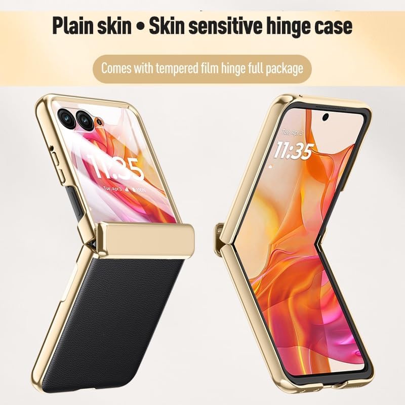 ? Luxury Design?Compatible with Motorola Razr 50 shell uses leather+Deluxe Electroplated Frame materials. Compatible with Motorola Moto Razr 50 Case which not only bring you real elegant and luxurious lifestyle but also provide great soft touch feeling without fingerprint. and protect the phone all over the body-against collision, scratches, daily wear, accidental drops and bumps.