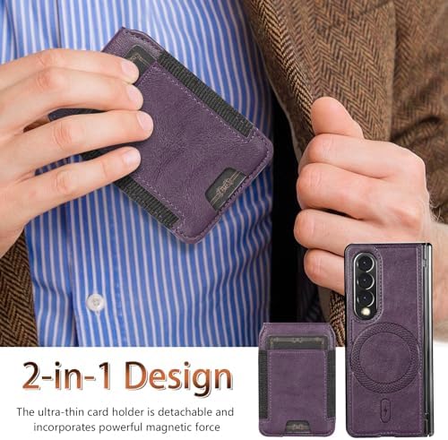 Smartphone Flip Cover For Samsung Galaxy Z Fold 4 5G Magnetic Detachable 2-in-1 Leather Case with Card Holder, Front Screen Protector & Kickstand – Slim Wallet Cover(Purple)