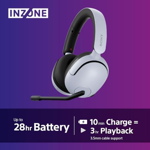 Sony INZONE H5 Wireless Gaming Headset – PC/PS5, 360 Spatial Sound for Gaming, 28H battery lifelow latency, comfortable design, microphone with AI – White