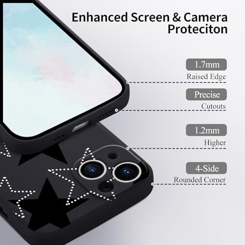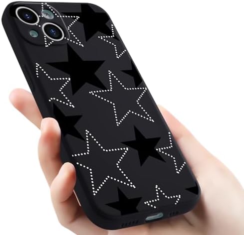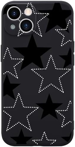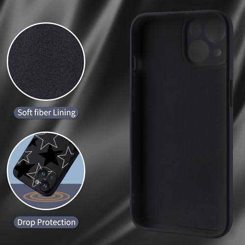Star Phone Case for iPhone 14 Black White Stars Case Cover Liquid Silicone Soft Gel Rubber Durable Matt Phone Cover with Microfiber Lining Protective Cover