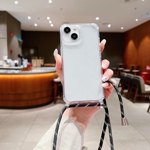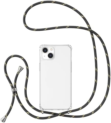 UEEBAI Crossbody Lanyard Clear case for iPhone 14 6.1 inch, Silicone Phone Cover with Adjustable Necklace Strap Soft Belt Neck Cord Lanyard Shockproof Protective Case – Black Gold