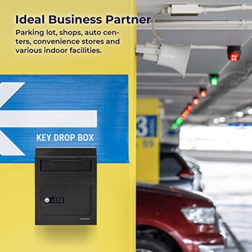HIGH QUALITY DROP SAFE BOX: Volcora’s top quality durable wall mounted drop box with lock for business is perfect for indoor office, shops, automotive, convenience stores, and various functions.