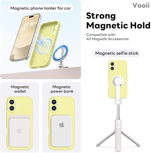Vooii Magnetic Compatible with iPhone 17 Case (Compatible with Magsafe) (Upgraded Camera Protection) Liquid Silicone Shockproof Full Body Protective Phone Cover for Women Men, Creamy Yellow, 6.3″
