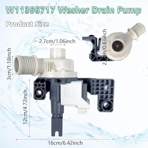 Washer Drain Pump Assembly Efficient Water Removal Pump For Laundry Machine Use Home Appliance Replacement Parts Features:The w11396717 washer drain pump assembly ensures efficient drainage for washing machines, water accumulation and extending the appliance’s lifespans.Crafted from abs materials, this pump assembly ensures stable performances and long term durability.Ideal for homeowners,