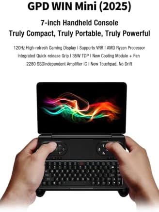 The GPD WIN Mini Pro 2025 is a premium handheld gaming PC with a 7″ 120Hz FHD screen, AMD Ryzen AI 9 HX 370 (12C/24T, 5.1GHz), 32GB RAM, and Windows 11 Home.Key Features:? Next-Gen Ryzen AI 9 HX 370 – 50 TOPS NPU for AI-enhanced gaming & apps.? AMD Radeon