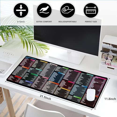 ?Necessary Office Supplies?Our Excel Shortcut Cheat Sheet Mouse Pad for Desk is designed for comfort and productivity. Measuring at 31.5×11.8 inches, it provides ample space to accommodate your mouse, keyboard, and other desk essentials. The latest shortcut key computer mat provides more advanced shortcuts and formulas to improve your office efficiency.