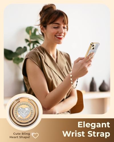 ??Cute and Timeless Design?With a gold electroplated edge, a heart shape engraved ring kickstand and a mini-hearts wrist strap chain, this case adds elegance and charm to your phone. It’s a perfect representation of your taste for luxury and style. Makes an ideal gift for your wife, mother, daughter, girl friend, and friends on occasions like Anniversary Day, Mother’s Day, birthdays, Christmas, Valentine’s Day, and more.