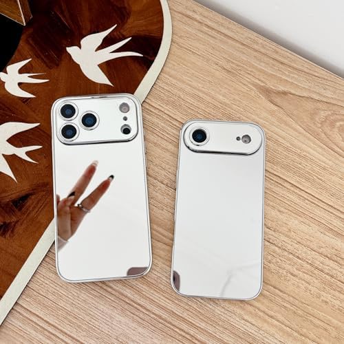 YTanazing Compatible with iPhone 17 Pro Mirror Case for Women Girls Makeup Cute Luxury Glossy Mirror Back Silver Plating Design with Camera Full Protective Shockproof Cover